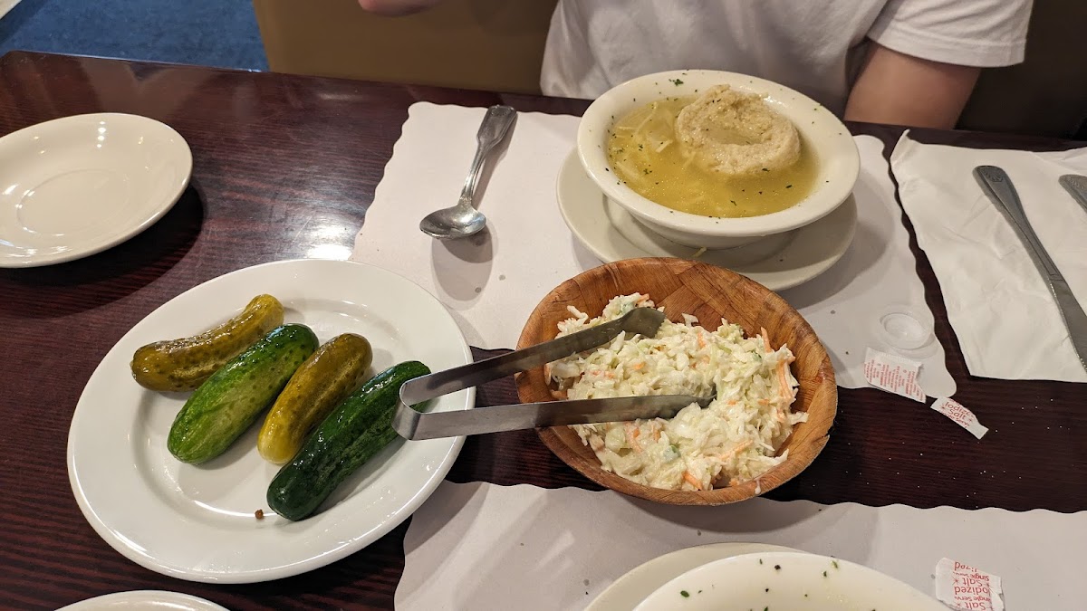 Food was excellent!! Service on point. Classic NY Deli vibe. Enjoyed the Pastrami sandwich with a pickle. Old school style good food.